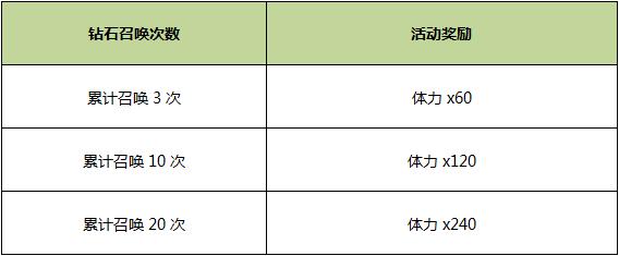 活动内容:活动期间,累计钻石召唤次数满足以下条件即可获得相应奖励!
