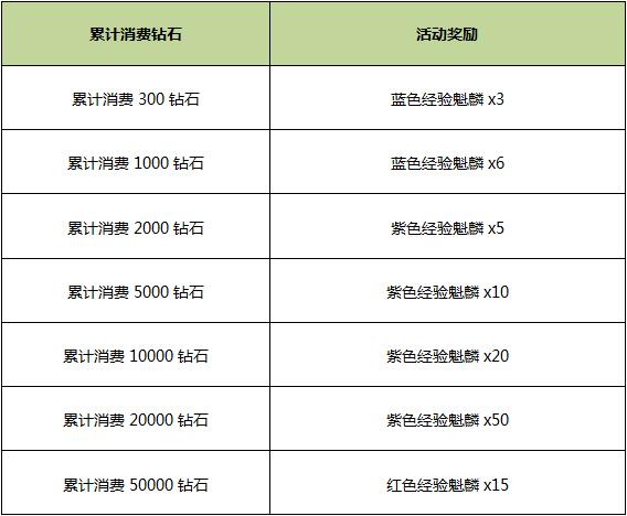 活动内容:活动期间,累计消费钻石满足以下条件即可获得相应奖励一份!