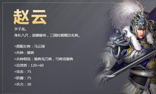 赵云,字子龙,常山真定(今河北省正定)人。身长八尺,姿颜雄伟,三国时期蜀汉名将。汉末军阀混战,赵云受本郡推举,率领义从加入白马将军公孙瓒。期间结识了汉室皇亲刘备,但不久之后,赵云因为兄长去世而离开。赵云离开公孙瓒大约七年左右的时间,在邺城与刘备相见,从此追随刘备。