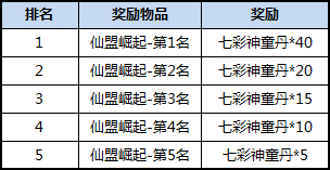 【活动内容】活动结束时,对仙盟总战力排名前五,对指定排名的仙盟全体成员发放奖励。奖励通过邮件发放。