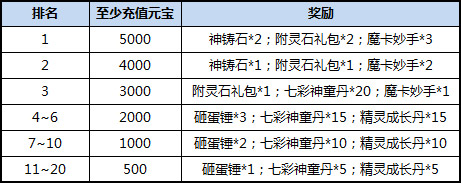 【活动内容】活动期间,每天零点对前一天的玩家进行非绑定元宝充值排名,发放对应奖励。