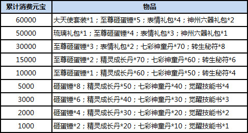【活动内容】活动期间,累计消费达到指定元宝,可领取奖励。