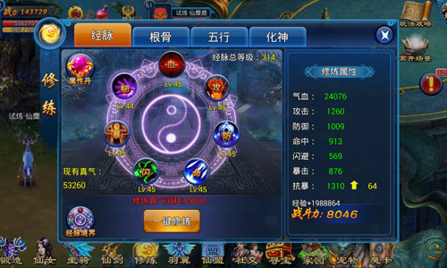 在《玄天神魔录》的修炼系统中,诸位仙侠可通过经脉、根骨来提升自身实力。正所谓根骨经脉两手抓,战力提升无止境!