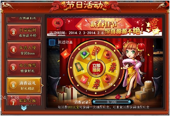 1. 活动期间,每消费300元宝就可以获得一次抽奖机会。可以重复消费获得抽奖机会!