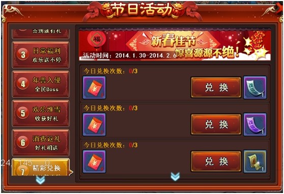 1. 活动期间可使用新年道具鞭炮,灯笼,春联和红包兑换各种珍贵游戏道具。