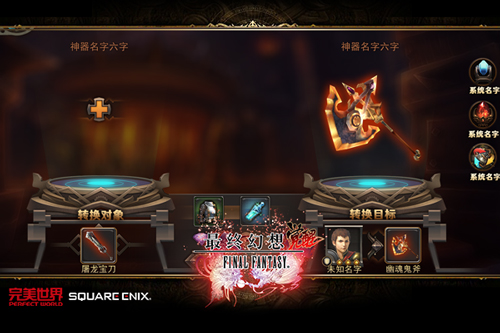 除了魔物讨伐系统外,新资料片还将增加神器转换系统玩法,玩家达到一定等级后,可以使用合成转换功能将现有的神器转换成任意一个同品质的其他神器,,转换后神器的进阶等级不会发生变化。同时转换神器所消耗的花费会根据神器的品质、进阶等级等因素决定。